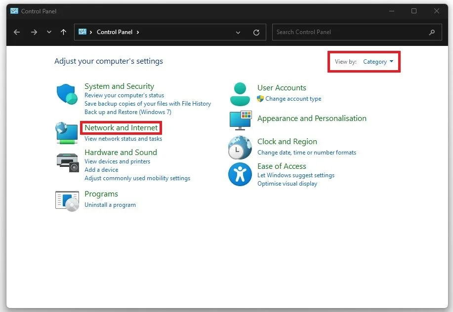 If nothing helps you out, you will have to change your DNS server address. To do so, open up your Control Panel. Here, make sure to view by category and select Network and Internet.