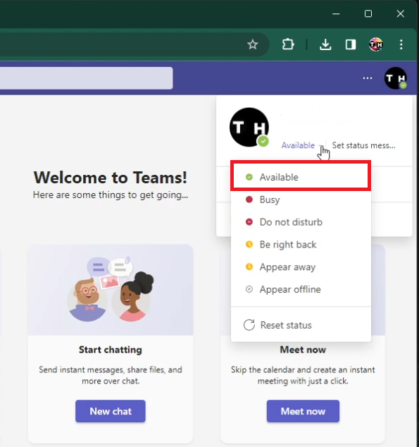 To keep your Microsoft Teams status set to "Available," navigate to your profile icon, click, and manually select your desired status. Ensure your computer's power settings are adjusted to prevent it from going to sleep, as inactivity can change your status to "Away.”