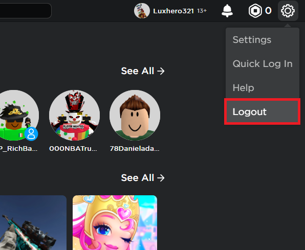 Example: On the Roblox website, clicking your profile icon will reveal a drop-down menu with the 'Log Out' option at the bottom.