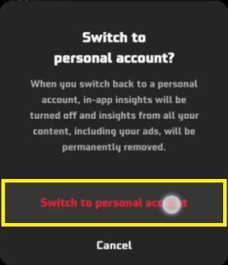 Tap on this option, then select “Switch to personal account” from the subsequent prompt. Instagram will alert you about the features you'll lose upon switching. If you're sure, proceed by tapping "Switch Back."