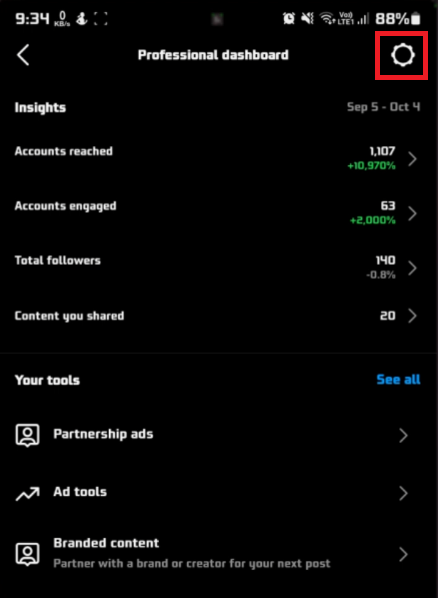 Once on your profile page, tap on “Professional Dashboard” at the top to delve into your account insights.
