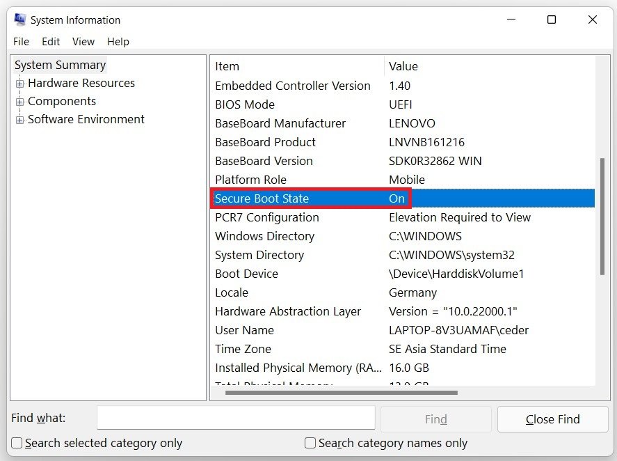 The error will show up due to various reasons. First, the Secure Boot feature in the BIOS setting might be disabled, leading to the error. To fix this, search for System Information in your taskbar search and press enter. Look at BIOS Mode and Secure Boot State on the right side of the screen. If Bios Mode shows UEFI, and Secure Boot State shows Off, then Secure Boot is disabled.