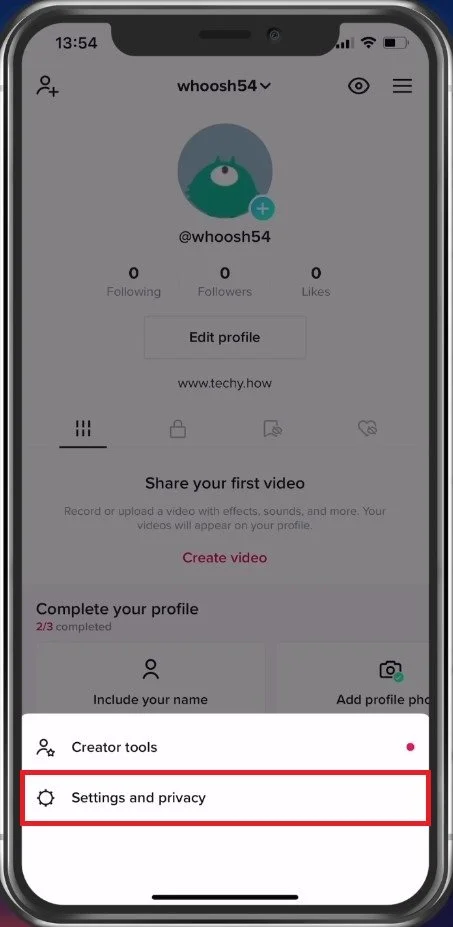 Open up your TikTok application and navigate to your Profile. Here, tap on the burger menu on the top right and select Settings and Privacy.