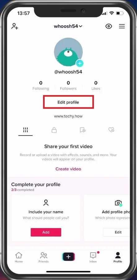 Open up your TikTok application and head over to your profile. Here, tap on the Edit Profile button under your username.