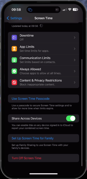 Check if there are any app limits for TikTok on your device or any linked iCloud devices. If yes, you can disable them in your device settings. Also, consider disabling the "Share Across Devices" option to prevent changes from applying to all connected iCloud devices.