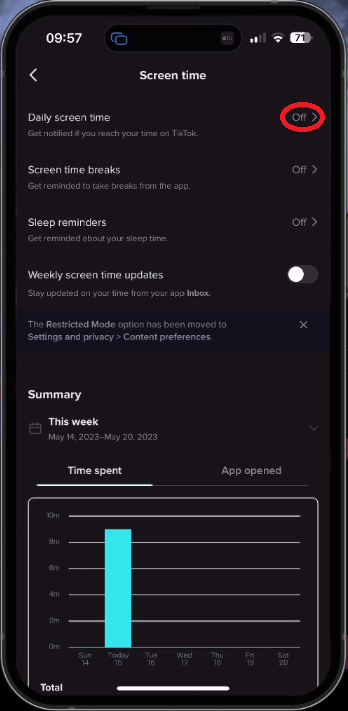 At times, you might find your access to TikTok limited if you surpass your allocated screen time. To review and modify this setting, return to your main TikTok settings and select "Screen Time". Here, you have the liberty to gauge your daily TikTok usage limit and adjust it to suit your preferences.