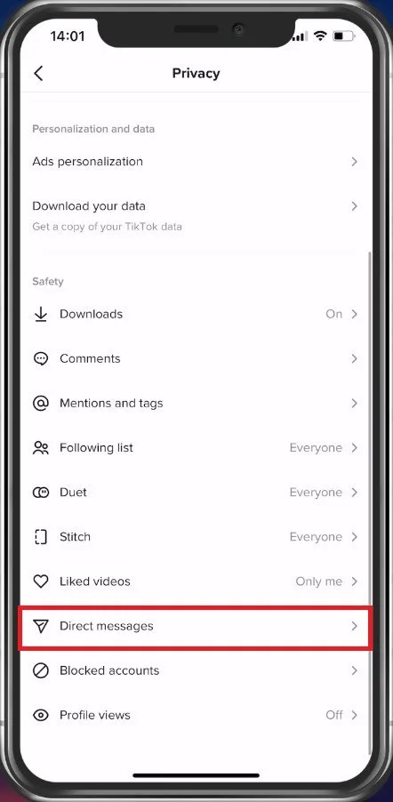 These can, when enabled, prevent direct messages from showing up on your TikTok application. It might in addition, prevent you from using the app entirely.