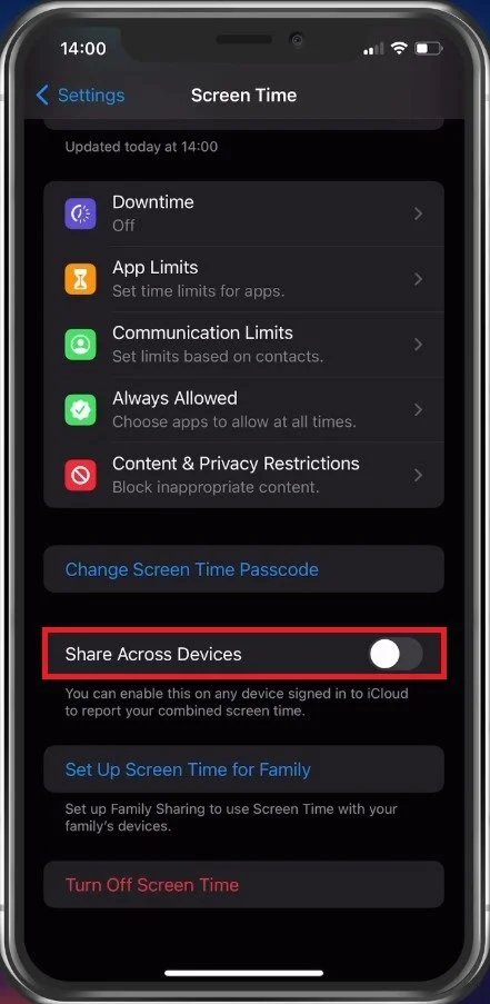 Make sure that the Share Across Devices option is disabled, as these changes would otherwise be applied to all iCloud devices.