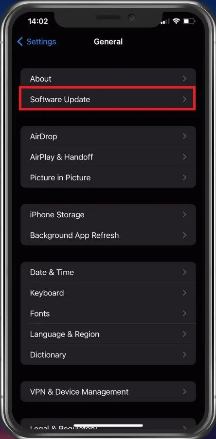 As a last resort, you should update and restart your mobile device. For iOS devices, open up your settings and navigate to the General section. Tap on Software Update and download and install the latest update in case one is available.