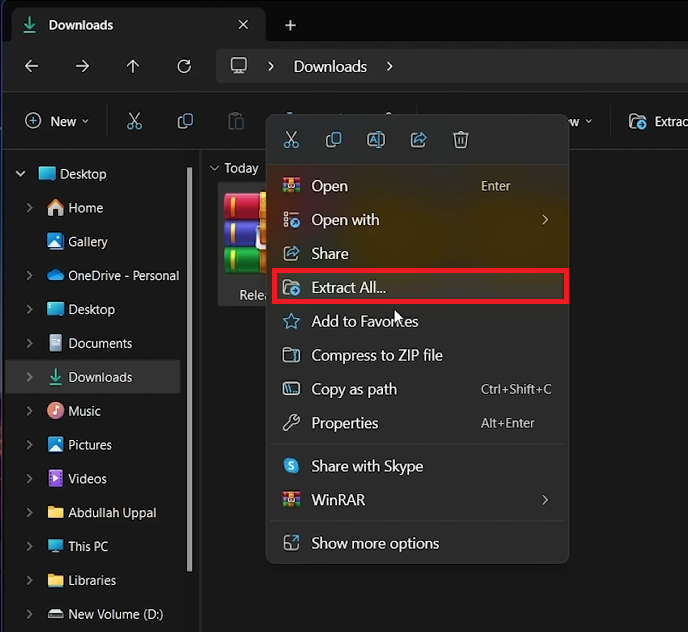 Extract File: Locate the downloaded ZIP file in your downloads folder, right-click, and select 'Extract All'.