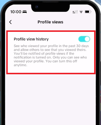 Enable Profile View History: Toggle the switch for 'Profile View History' to the ON position.