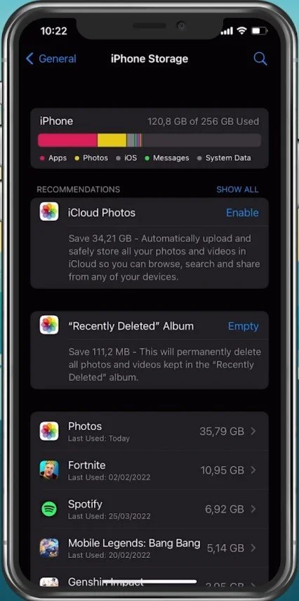 Verify the iPhone Storage Settings