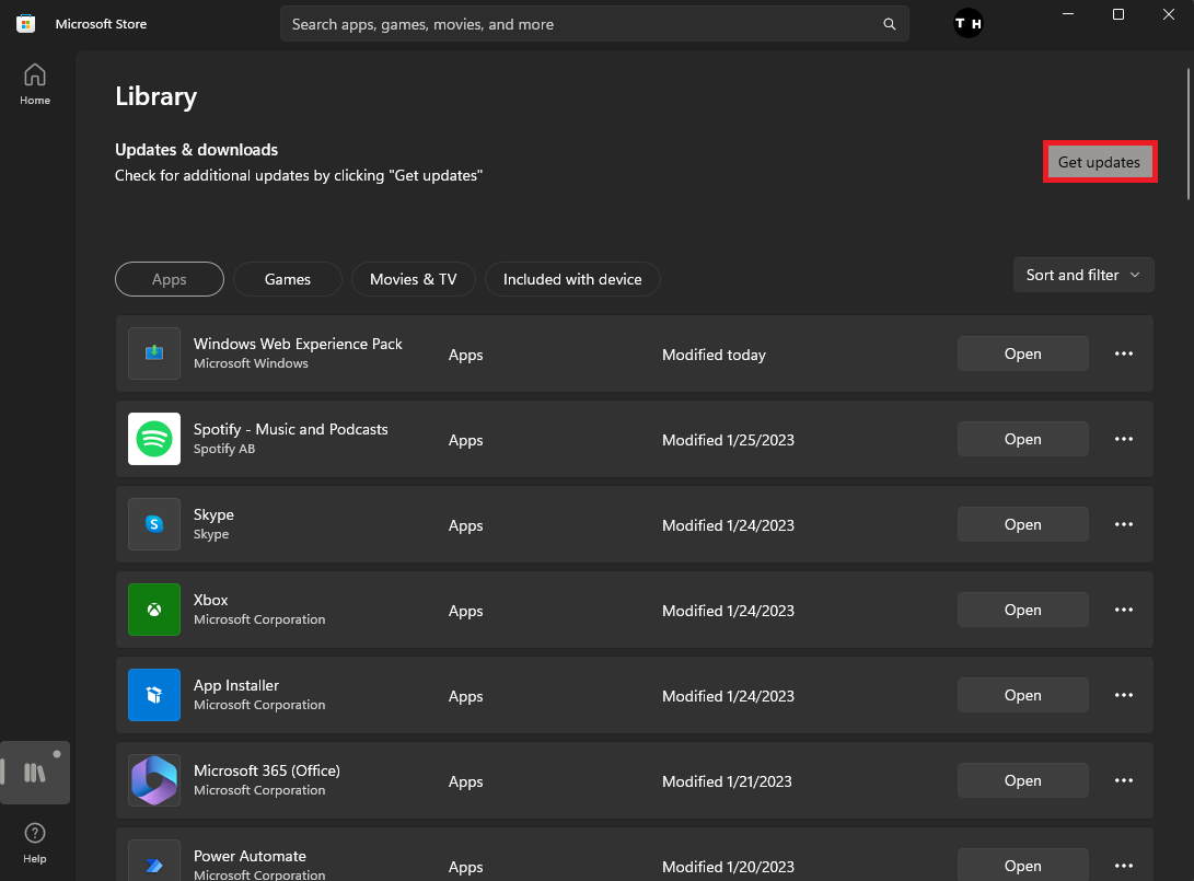 If you prefer to use the Microsoft Store version of Roblox, open the Microsoft Store application and navigate to your Library. You will see a list of apps and games already installed on your Windows PC. When clicking on Get Updates, your PC will download any available updates, including the Roblox game update.