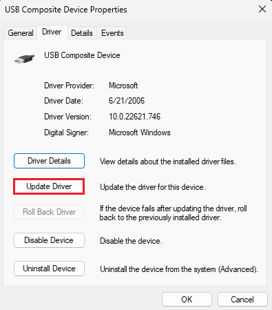 Update the Device Driver: If necessary, proceed to update the driver by selecting the 'Update Driver' option in the properties window. This action might alleviate the issue and enhance the device's functionality.