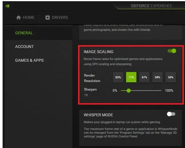 You might need to lower your in-game graphics settings if the problem is related to your system performance. If you’re using an NVIDIA graphics card, I suggest enabling NVIDIA Image Scaling, which will significantly increase your performance. Navigate to your GeForce settings. Scroll down and enable the Image Scaling option. This will boost your overall frame rates when playing a game on your PC.