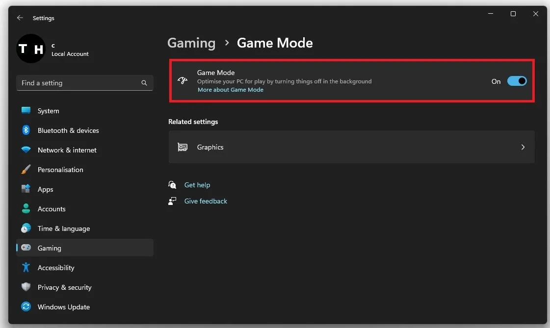 Under Game Mode, you can enable or disable Game Mode on your PC. In theory, Game Mode should prevent Windows Update from performing driver installations and sending restart notifications and help achieve a more stable frame rate while in-game.
