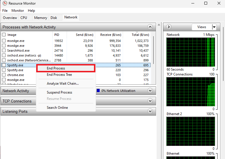 Resource Monitor > Network