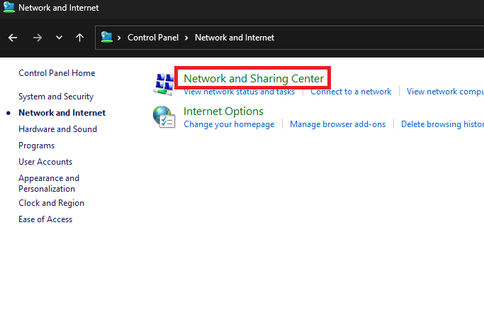 Traverse through to Network and Internet > Network and Sharing Center.