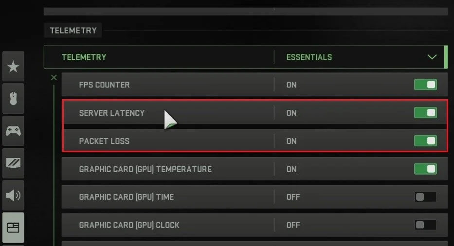 First, open up the game and navigate to your Interface settings. Here, scroll down and under Telemetry, click on Show More, and enable the Server Latency and Packet Loss options.