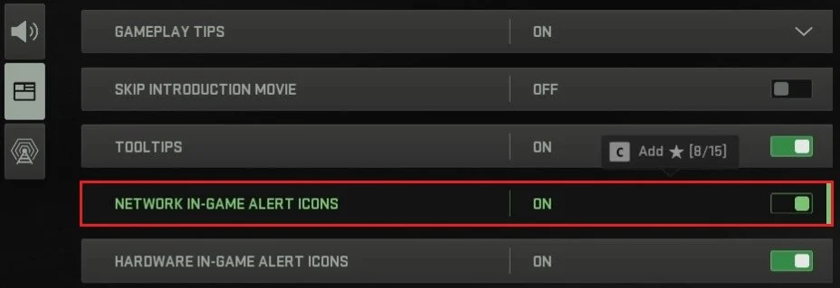 Modern Warfare 2 > Interface Settings > Network In-Game Alert Icons