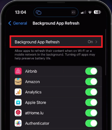 From here, select “Background App Refresh”. Ensure this feature is turned on.