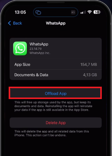 From here, select "Offload App".