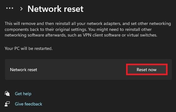 Click on Network reset. This will allow you to reset your network settings and reinstall your network adapters. If you use custom DNS servers, you must reinstall your VPN client and change your DNS server addresses.