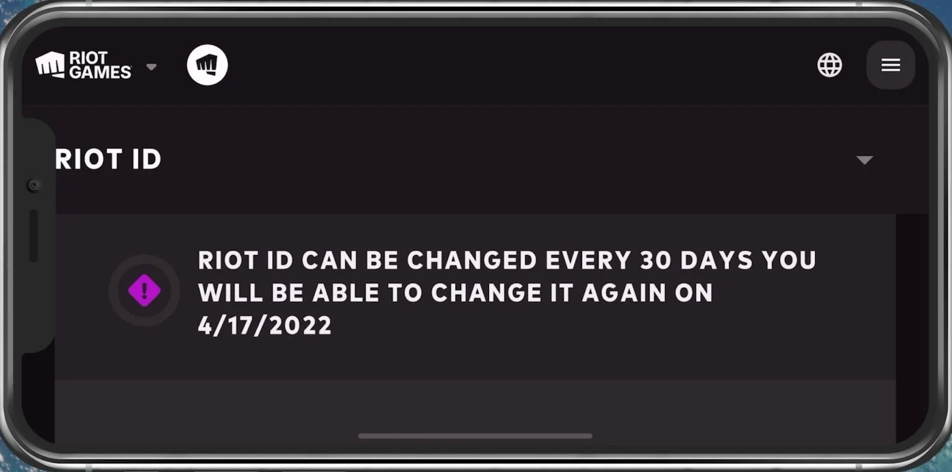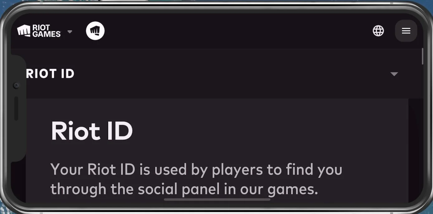 After logging in, you can find all of your profile information, which can be changed. Tap on Riot ID. This will allow you to enter a new Riot ID and tagline.