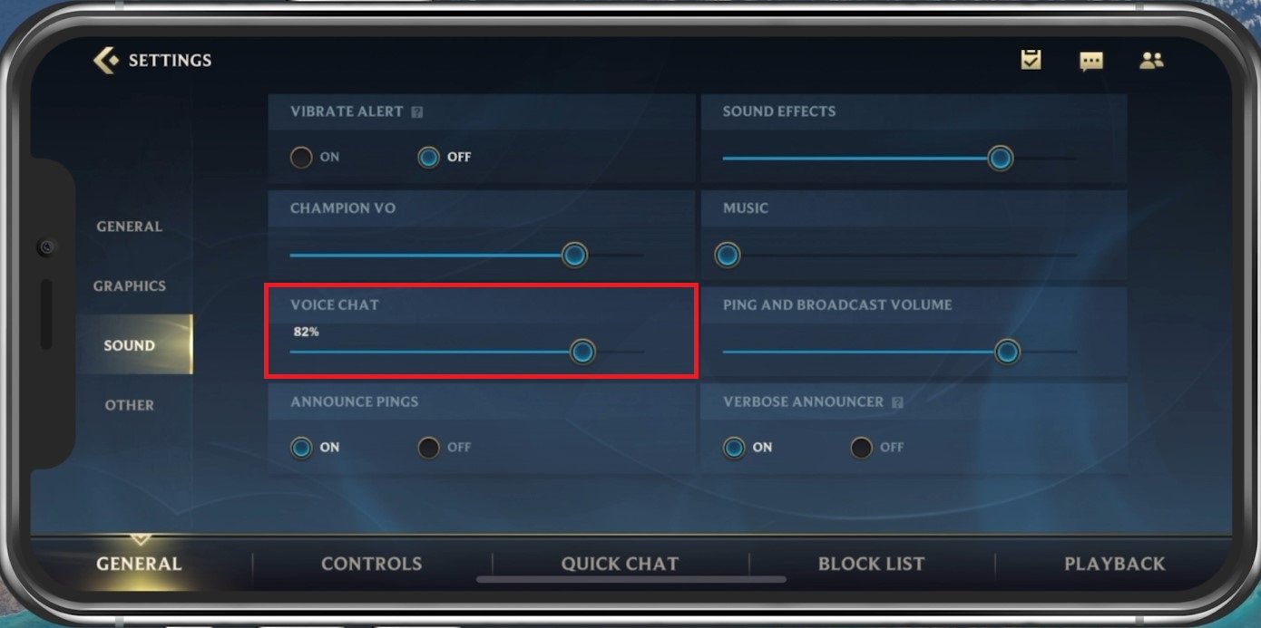 Open up Wild Rift and navigate to your Settings. In the Sound section, ensure the Voice Chat volume slider is not muted, and set it to at least 50%.