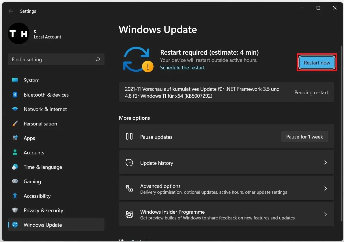 You can now close the window and search for Update in your start menu search to open up your search for updates system settings window. Download the latest update and restart your PC to install it.
