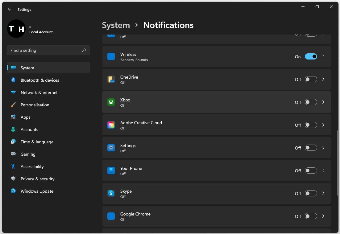 Open up your Windows settings to the System tab. Under Notifications, you should prevent some applications from sending you notifications, especially from 3rd party senders, such as Adobe Creative Cloud or Discord.