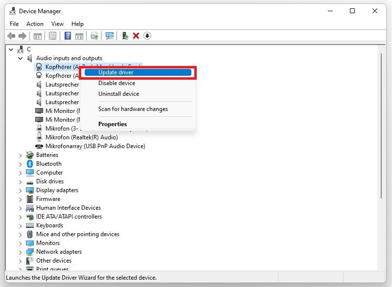 Device Manager > Audio Inputs and Outputs > Update Driver