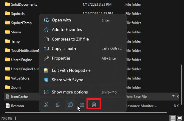 With hidden files now visible, scroll down to locate the IconCache database file and delete it. This simple process can often restore the appearance of your desktop shortcuts.