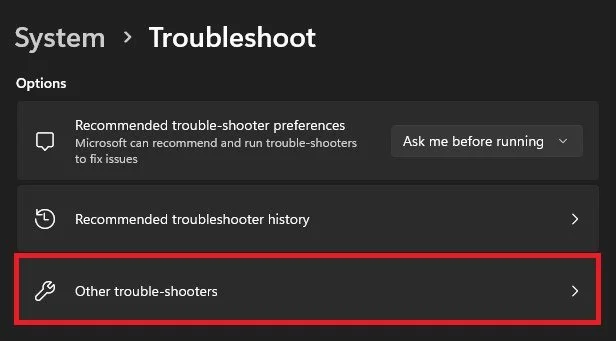 System Settings > Troubleshoot > Other Trouble-Shooters