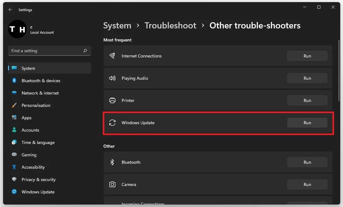 Lastly, search for Troubleshoot in your start menu search to open up your Troubleshoot system settings window. Click on Other trouble-shooters. Select to run the Windows Update troubleshoot, which will take a minute to fix any common Windows update issues your PC might have to prevent the Windows 11 update error you are getting. You should note that you need administrator permissions on your device to allow Windows updates.