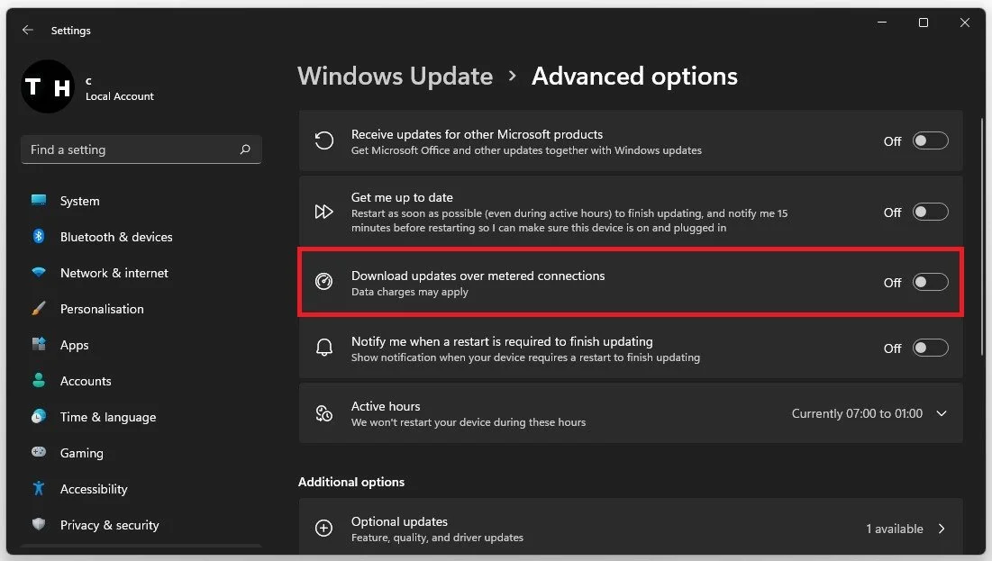 Disable the Download updates over metered connections option. Most of these options should be disabled by default, but just to be sure, disable them all before downloading a new OS update.