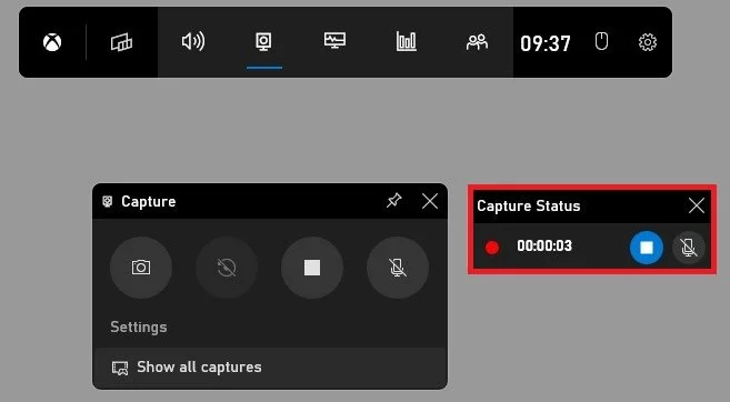 To preview your recordings and screenshots, select Show All Captures. You can find your screenshots in this gallery, and when selecting the folder icon, you can access the folder that contains all of your recordings.
