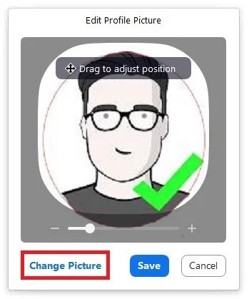 In the Profile section of your settings, simply click on your profile picture and you can proceed to edit your existing picture, or select to Change Picture.