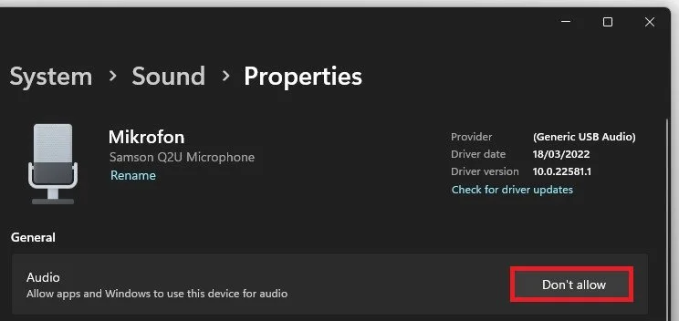 You can also start a microphone test form here. If you don’t hear any sound input from the sound test, then make sure that a hardware switch does not mute your microphone and that it’s not faulty.
